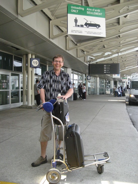At Pearson International eli Toronton lentoasemalla. Takana bussimatka Sudburystä Torontoon ja edessä pitkä lento Suomeen. Kaikkiaan tuli matkustettua yhtäkyytiä 23 tuntia ja kotona odotti heti ensimmäinen orkesteriharjoitus Hallin Janne-oopperasta Jyväskylä Sinfonian kanssa ja vielä teoksen säveltäjä Jukka Linkola oli paikalla. Vähän oli hutara olo ja tempot ja sisääntulot hakusessaan mulla siinä harjoituksessa...