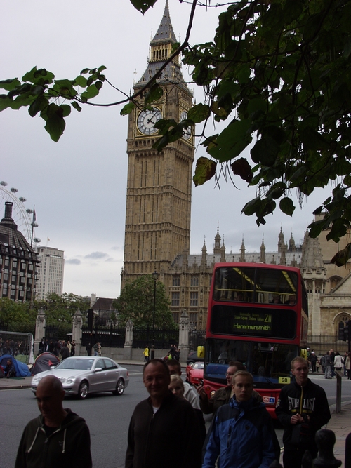 Parlamenttitalo ja kaksikerroksinen bussi.