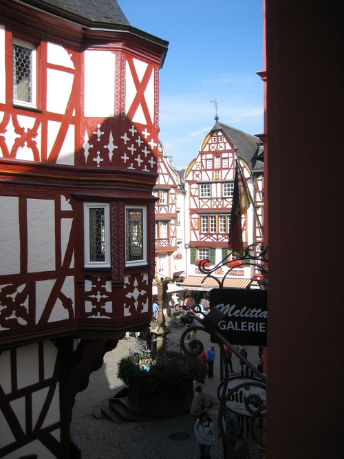 Syyskuussa olin Anjan kanssa Moselin laaksossa pienessä idyllisessä kaupungissa nimeltä, Bernkastel-Kues, jonka näkymää tässä talomme edestä.
