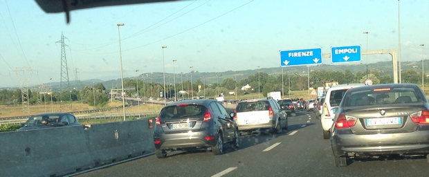 Viikonloppuruuhkassa Livornon ja Firenzen välisellä autostradalla