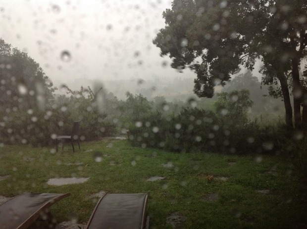 Välillä on aurinkoisessa Toscanassakin kunnon myrskyjä. Majapaikan ikkunasta näytti tältä